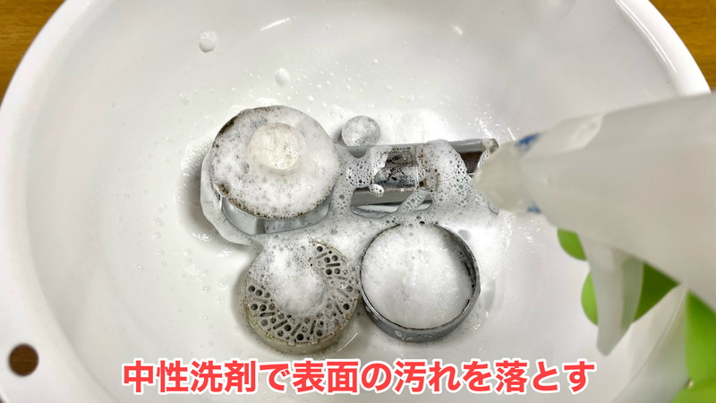 まず台所用の「中性洗剤」で表面の汚れを落とします。