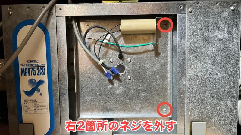 次に、右側2箇所のネジを外します。