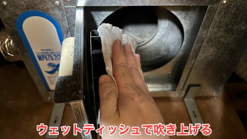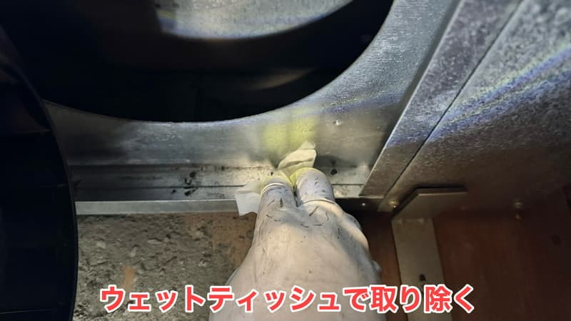 掃除機が届かない部分に落ちたホコリは、「ウェットティッシュ」を数枚使って取り除きました。