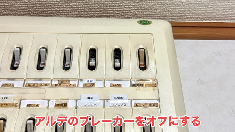 アルデには電源オフの機能がないので、該当するブレーカーを落として停止させます。