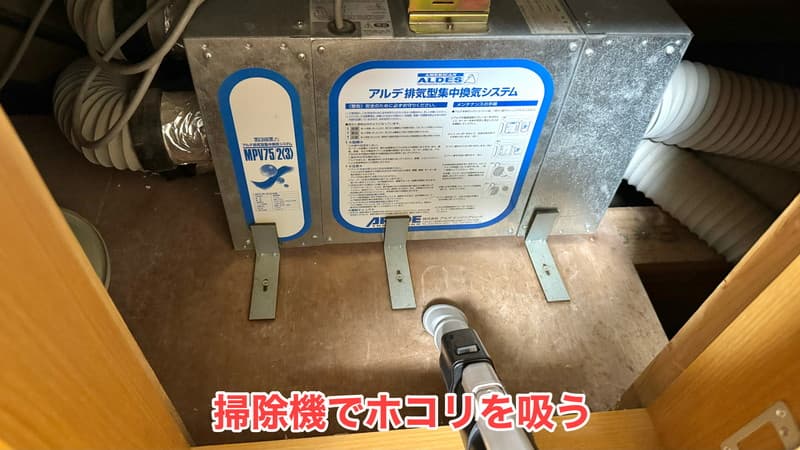 まず、掃除機で周辺のホコリを吸い取ります。