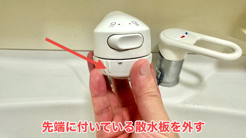 原因を把握するために、先端についている「散水板」を外します。