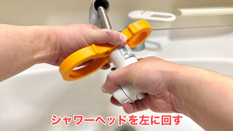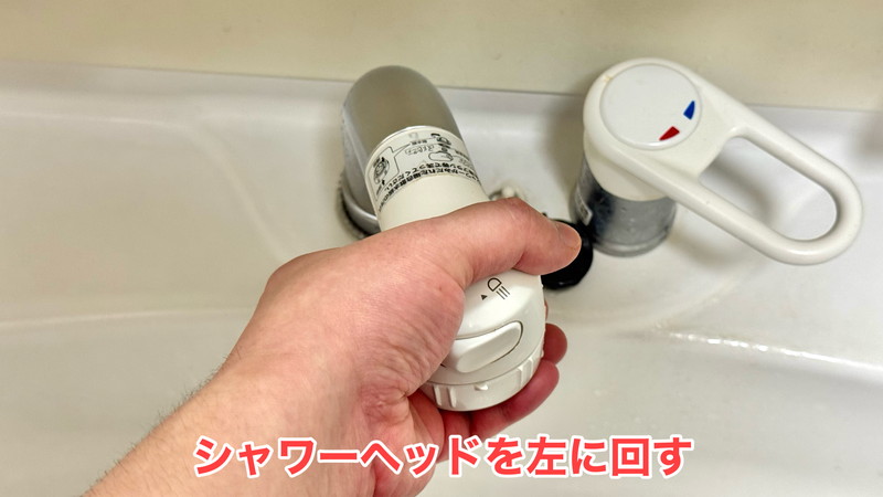 もう片方の手でシャワーヘッドを左(反時計周り)に回します。