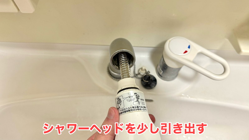 まず、シャワーヘッドをホルダーから少し引き出します。