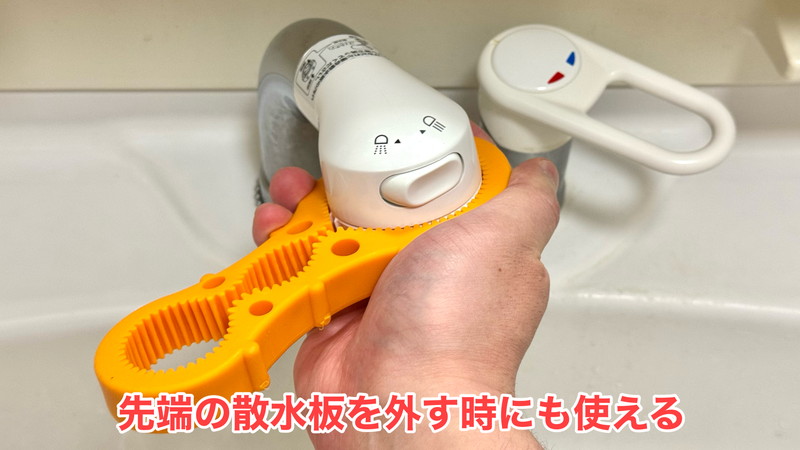 本来の用途は固いビンやキャップを開けるための物ですが、シャワーヘッドにも効果抜群でした。
