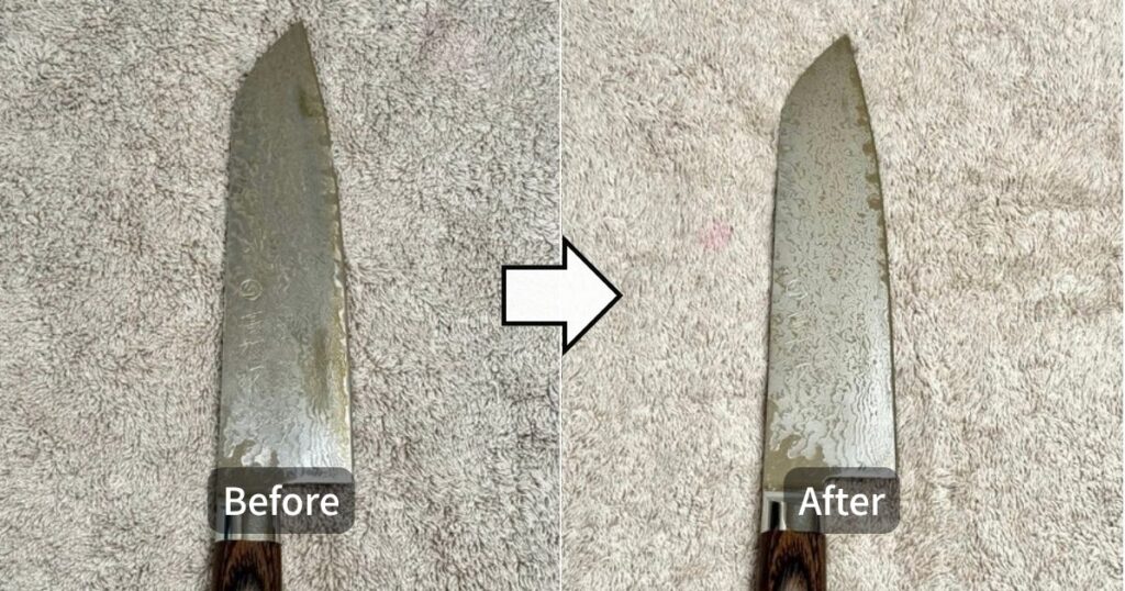 ダマスカス包丁の茶色い汚れを除去!原因と落とし方を実例で解説